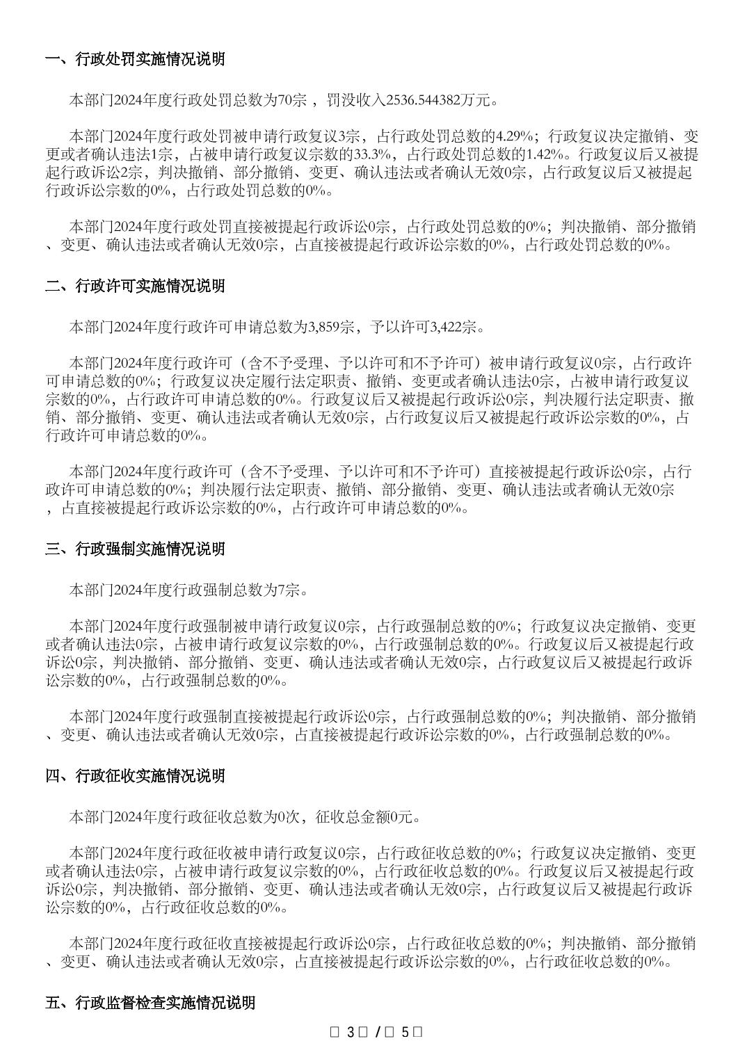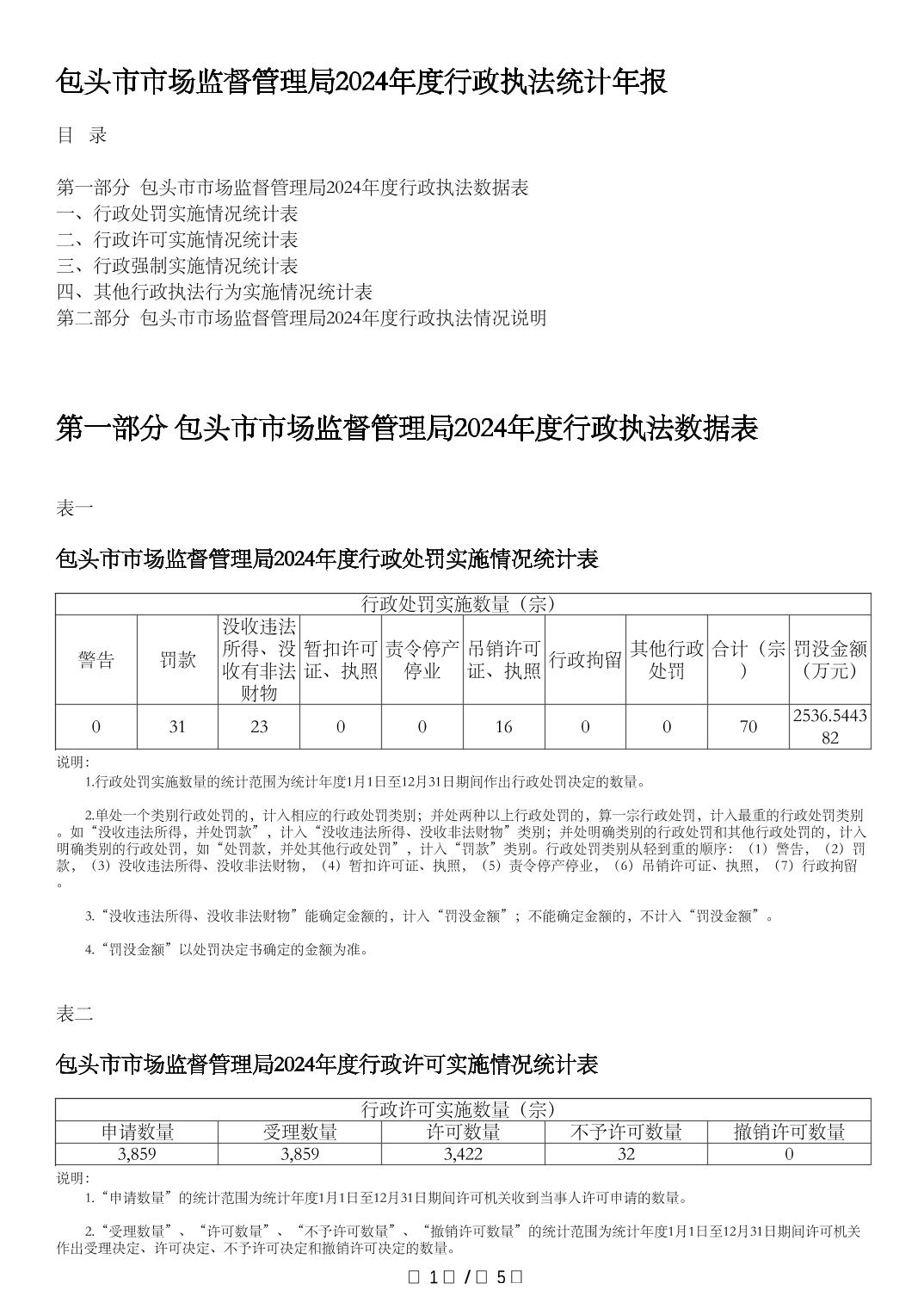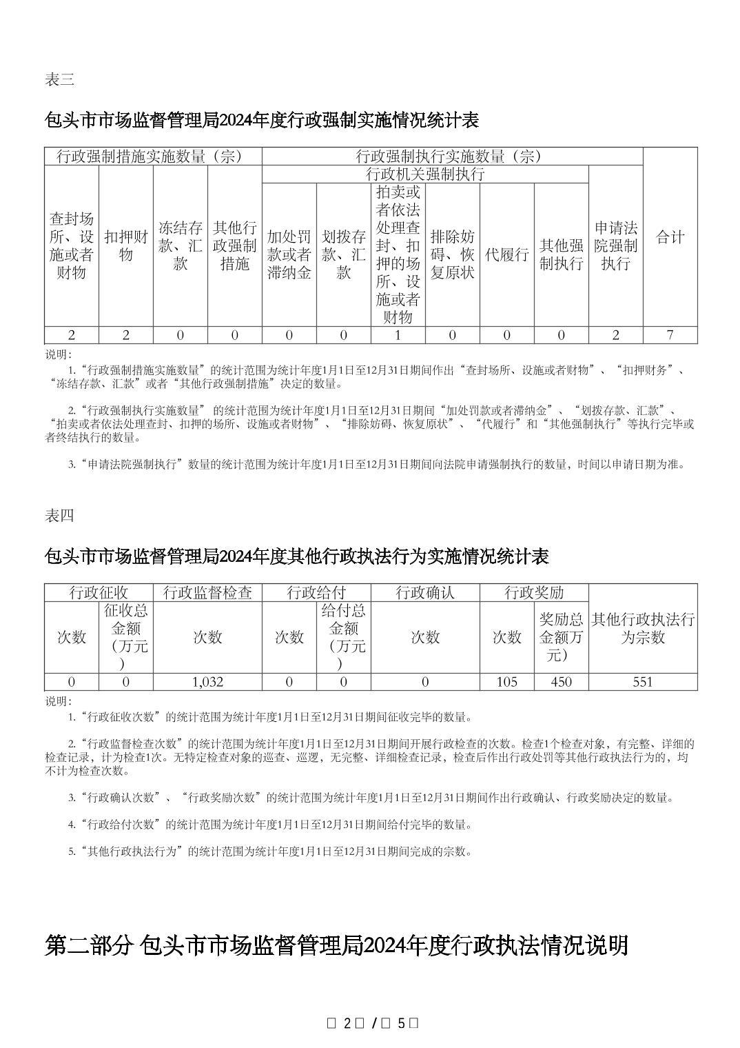 包头市市场监督管理局2024年度行政执法统计年报