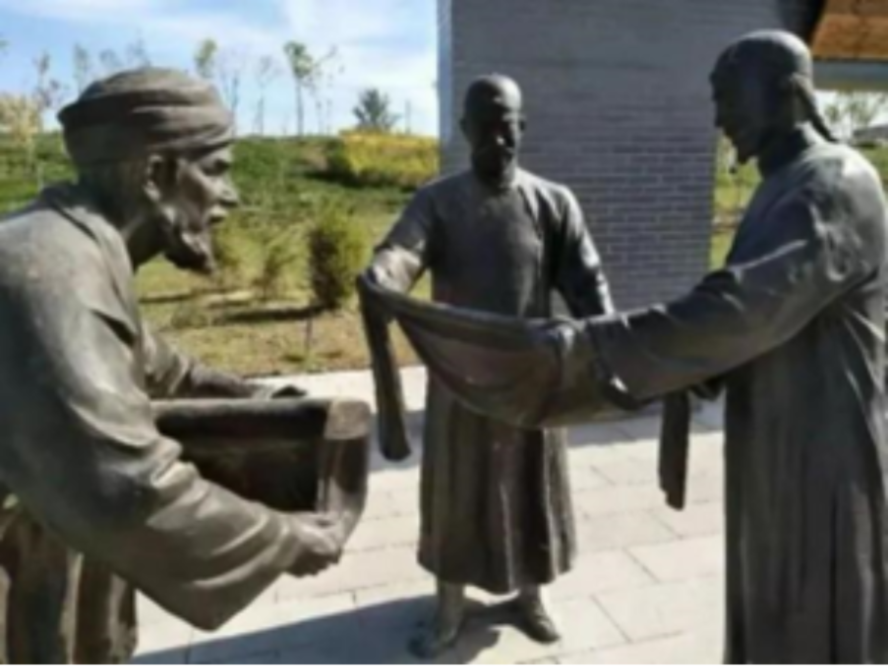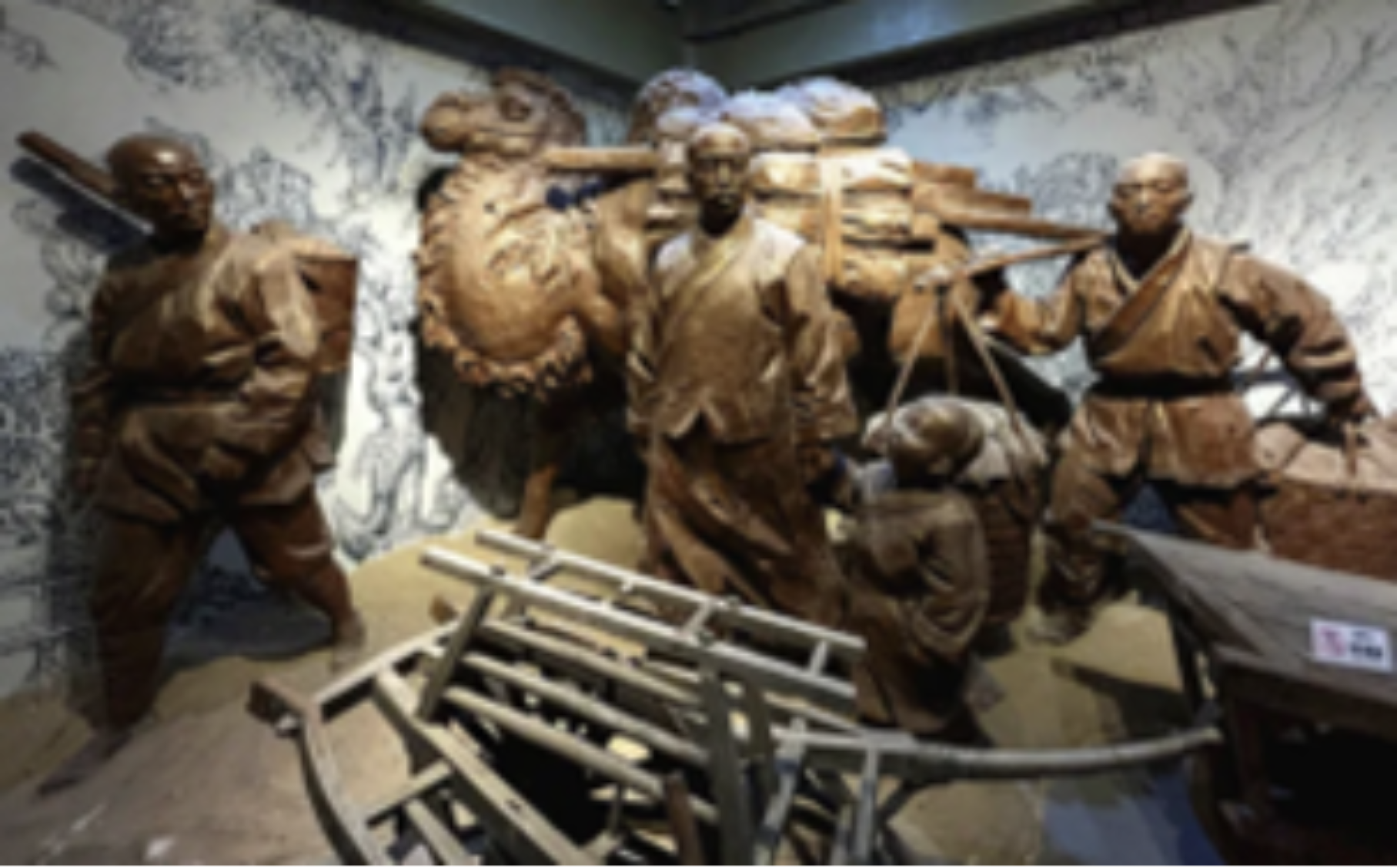 ▲奇台水磨河雕塑:大营客与维吾尔族人做生意。(图片来源:西青档案)